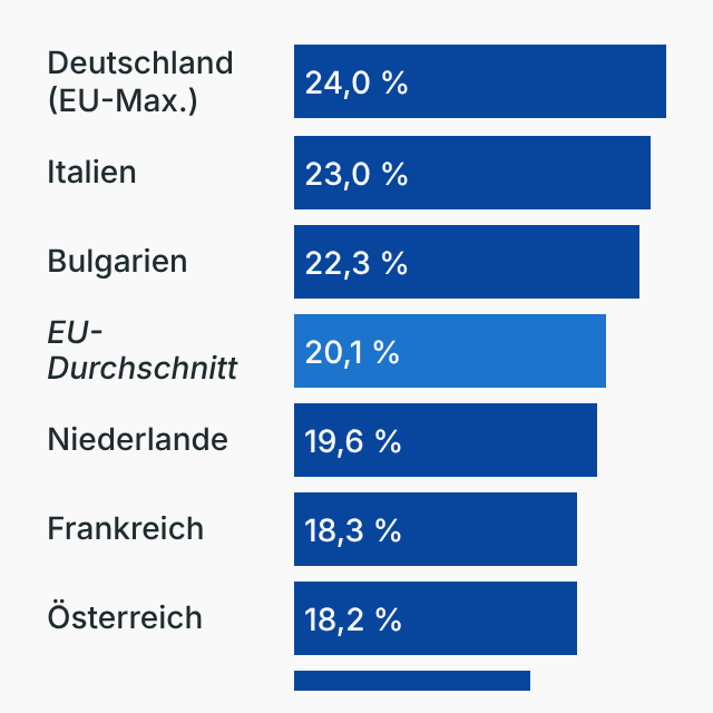 Die Grafik zeigt den Anteil älterer Erwerbstätiger zwischen 55 und 64 Jahren an allen Erwerbstätigen in ausgewählten EU-Ländern