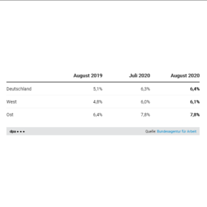 Die Webgrafik zeigt die Arbeitslosenquoten für den Monat September 2023 im Vergleich Ost und West sowie zu Vormonat und Vorjahr.