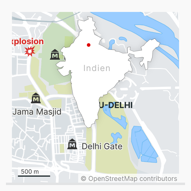 Lokalisierung der Autoexplosion in der Nähe der Touristenattraktion Red Fort