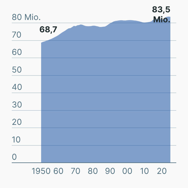 Zum Jahresende 2025 lebten rund 83,5 Millionen Menschen in Deutschland. Nach einer ersten Schätzung des Statistischen Bundesamtes (Destatis) war die Bevölkerung damit um etwa 100.000 Personen kleiner als am Jahresende 2024.