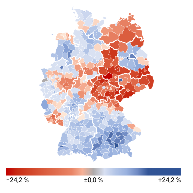 Diese Webgrafiken zeigen die Entwicklung der Bevölkerung bis zum Jahr 2045 in deutschen Kreisen und kreisfreien Städten, entweder für ganz Deutschland oder in regionalen Zuschnitten.