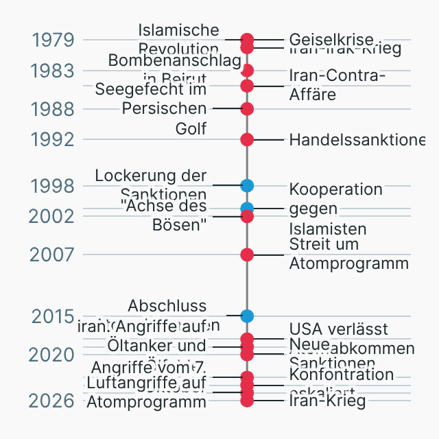 Zeitstrahl der wechselseitigen Beziehungen zwischen den USA und dem Iran.
