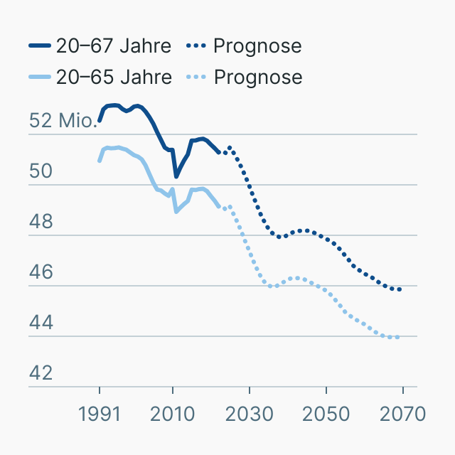 Entwicklung und Prognose der erwerbsfähigen Bevölkerung 1991-2070