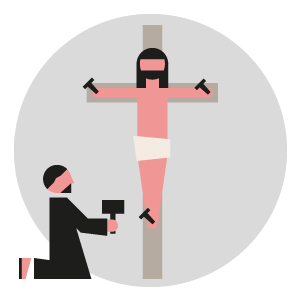 Diese Webgrafik zeichnet die 14 Stationen des Leidenwegs Jesu auf dem Weg zur Kreuzigung nach.