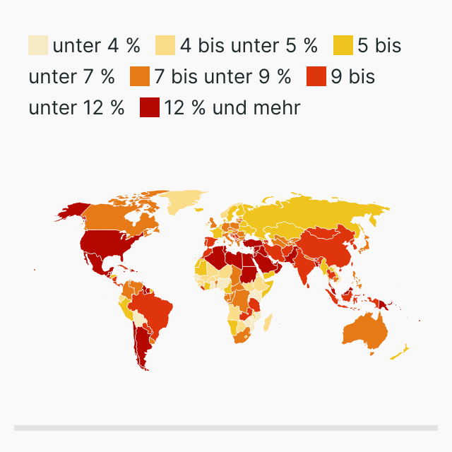 Diese Weltkarte zeigt den Anteil der 20- bis 79-Jährigen, die im Jahr 2024 an Diabetes erkrankt waren