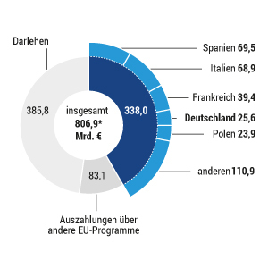 Die Webgrafik zeigt die Zusammensetzung der Corona Hilfsmaßnahmen für die EU-27-Staaten.