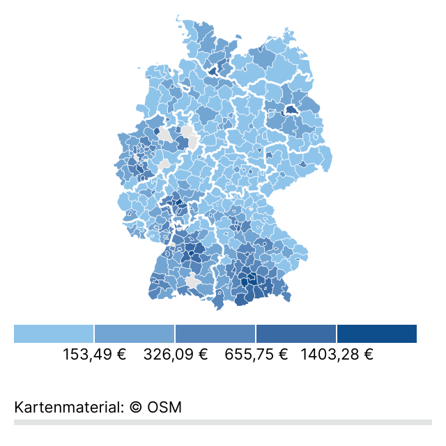 Diese Webgrafiken zeigen die Bauland-Preise in deutschen Kreisen und kreisfreien Städten, entweder für ganz Deutschland oder in regionalen Zuschnitten.