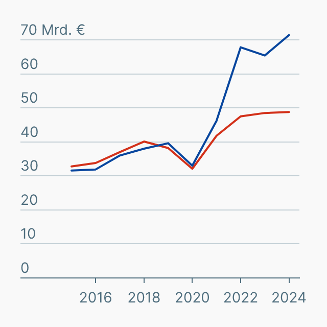 Die Grafik zeigt, wie sich der Warenhandel zwischen der EU und Indien seit 2015 entwickelt.
