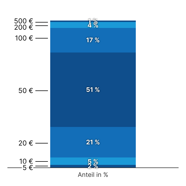 In Deutschland im 1. Halbjahr 2025 aus dem Verkehr gezogene Banknoten