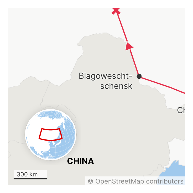 Verortung Flugzeugabsturz an russisch-chinesischer Grenze