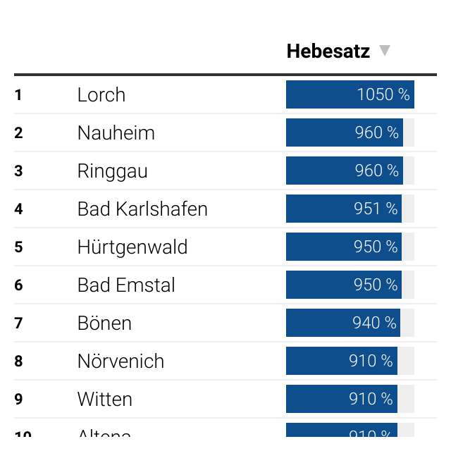 Diese Webgrafiken zeigen die Grundsteuer-Hebesätze in deutschen Gemeinden und Städten, entweder für ganz Deutschland oder in regionalen Zuschnitten.