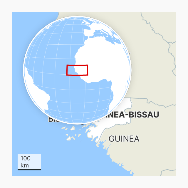 Guinea-Bissau liegt an der Westküste Afrikas in der Nähe des Äquators.