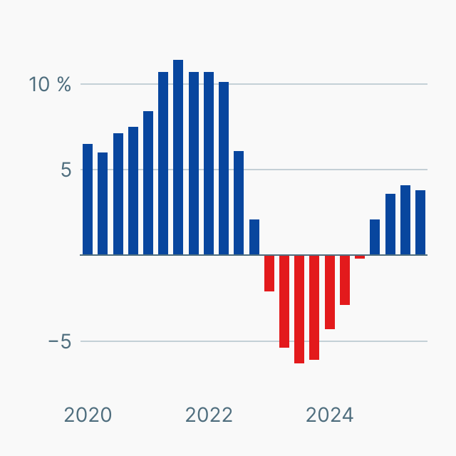 Die Grafik zeigt die quartalsweise Entwicklung der Immobilienpreise in Deutschland seit Anfang 2020