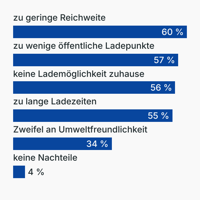 Umfrage zu Nachteilen bei der Nutzung von E-Autos