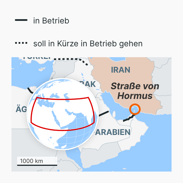 Die Grafik zeigt die für Ölexporte wichtigsten Alternativrouten zur Straße von Hormus.
