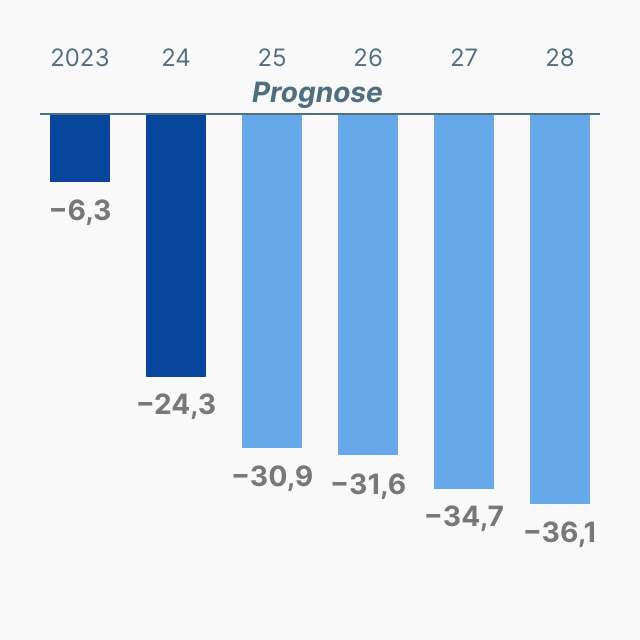 Finanzierungssaldo der Kommunen in den Flächenländern in Milliarden Euro