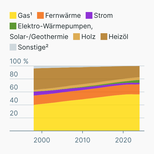 So hat sich der Bestand der Heizungs-Energieträger in Wohn- und Nicht-Wohngebäuden in Deutschland seit dem Jahr 1998 entwickelt.