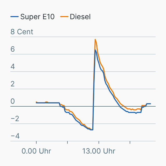 Die Grafik zeigt die durchschnittliche Abweichung der Spritpreise vom Mittelwert seit Einführung der 12-Uhr-Regel
