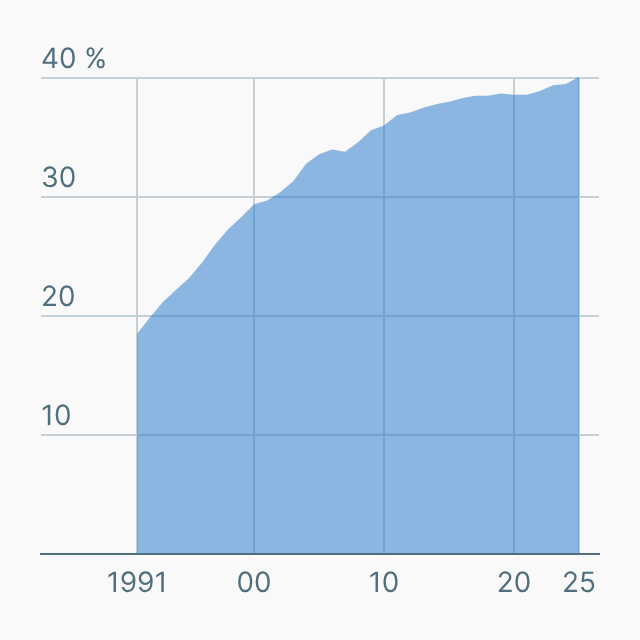 Die Zahl der Teilzeitbeschäftigten stieg im 3. Quartal 2025 um 1,0 Prozent verglichen mit dem Vorjahresquartal. Die Teilzeitquote nahm um 0,4 %-Punkte zu und lag damit bei 40,1 Prozent. Das liegt auch an einem Beschäftigungszuwachs gerade in Branchen mit einem hohen Teilzeitanteil.