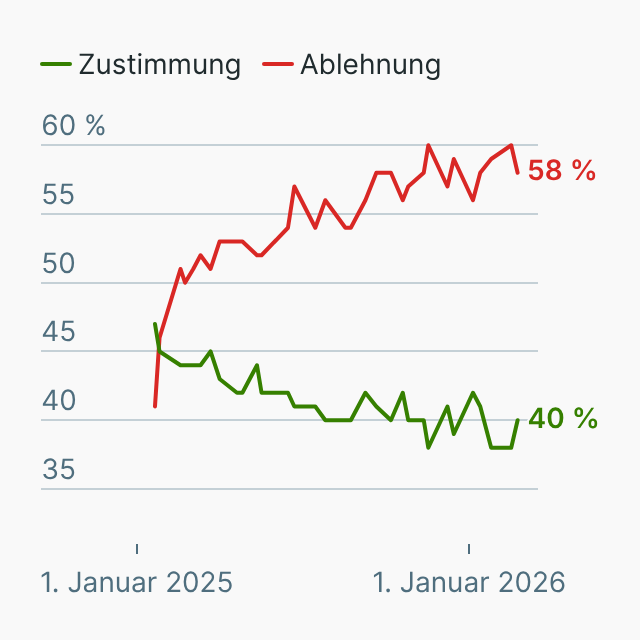 So haben sich die Umfragewerte von US-Präsident Donald Trump seit Beginn seiner zweiten Amtszeit im Januar 2025 entwickelt.