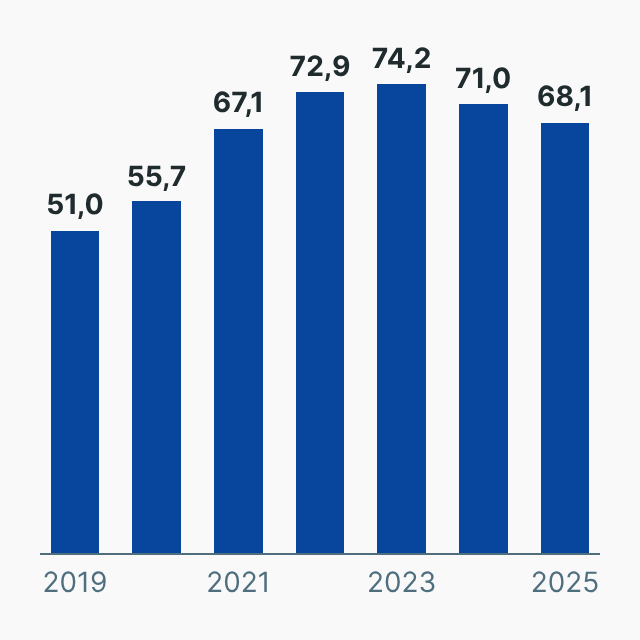Die Grafik zeigt den Average Selling Price (ASP) für Pkw bei Mercedes-Brenz seit 2019