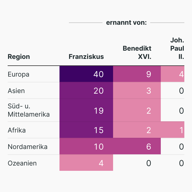 „Wahlberechtigte Kardinäle nach Kontinenten“; Grafik: P. Massow, Redaktion: B. Schaller