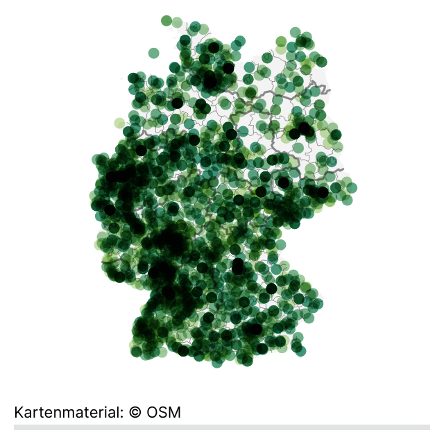 Diese Webgrafiken zeigen Weihnachtsmärkte in Deutschland, entweder für ganz Deutschland oder in regionalen Zuschnitten.