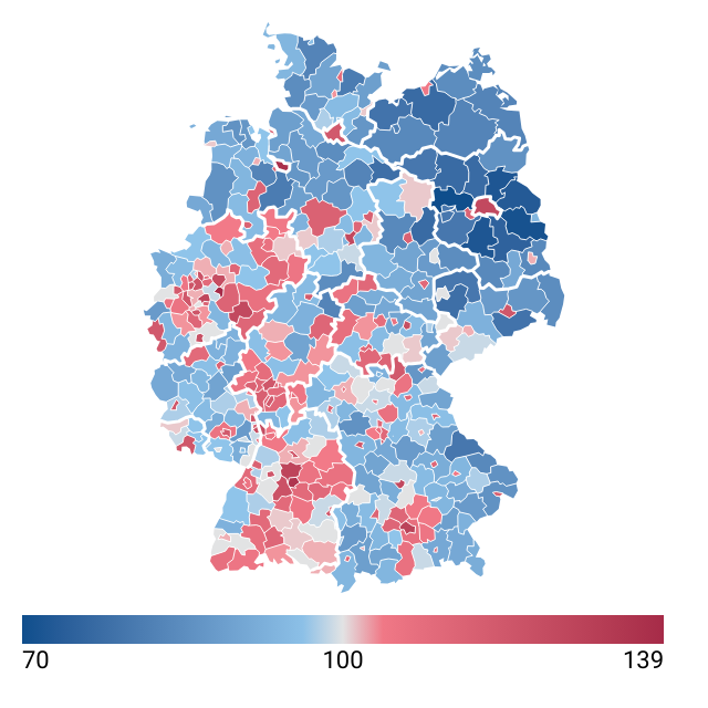 Diese Webgrafiken zeigen den Wanderungssaldo in deutschen Kreisen und kreisfreien Städten, entweder für ganz Deutschland oder in regionalen Zuschnitten.